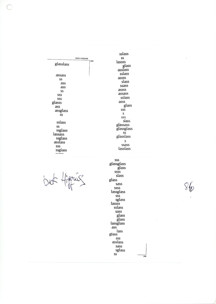 - Autograph notes about Dick Higgins, Arrigo Lora Totino, S.D., Courtesy Morra Foundation