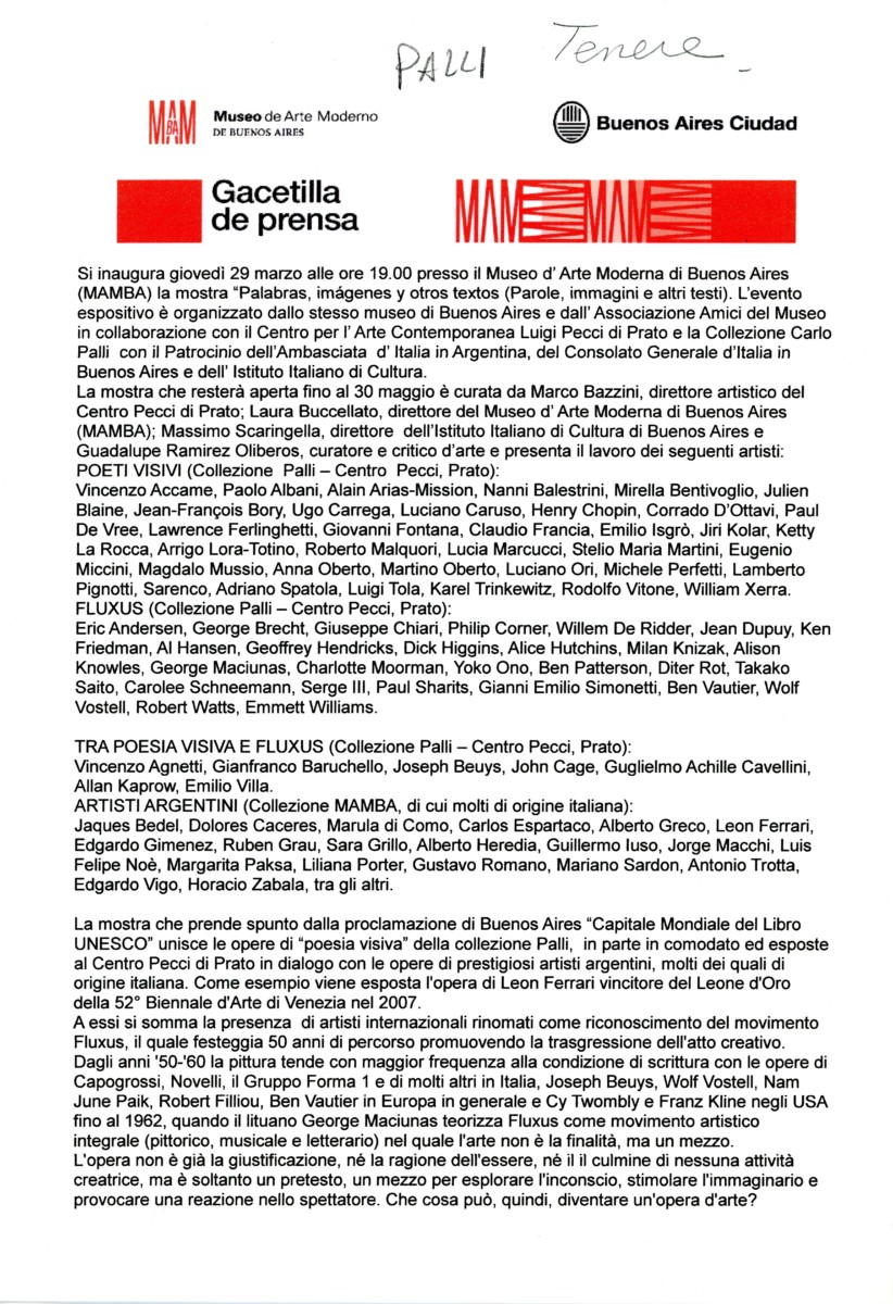 This section is dedicated to materials relating to the artist’s various initiatives in Italy and abroad. It holds about 2,800 documents including invitations, posters, bill-boards and press reviews, and runs from the early 60s to 2016.