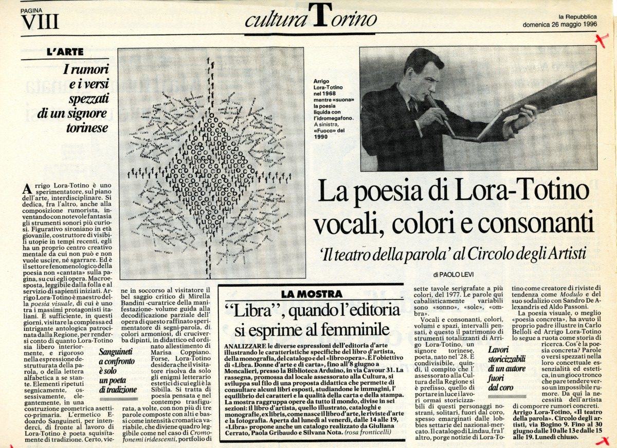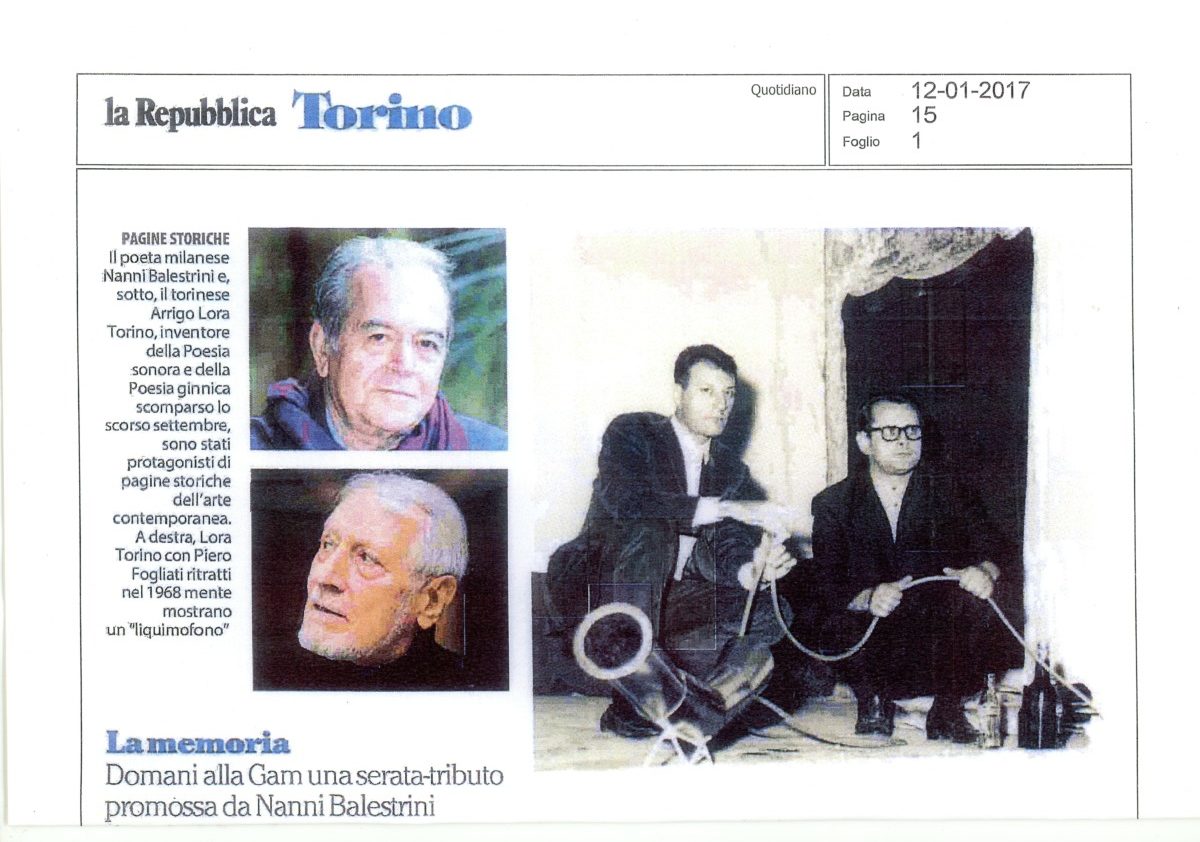 - Press review la Repubblica, Arrigo Lora Totino, 2017 Courtesy Fondazione Morra, 2017