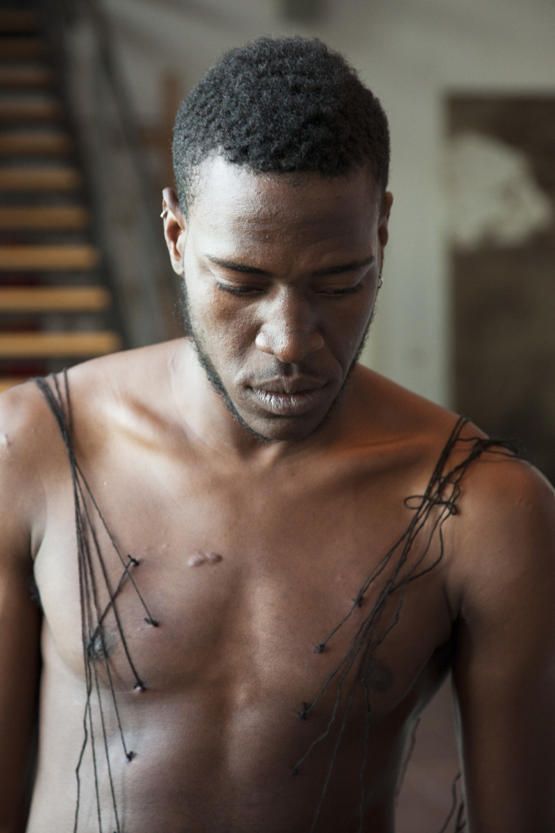 Carlos Martiel (La Habana, Cuba, 1989), lives and works between Buenos Aires and La Habana where he attended the academic chair of “Arte de Conducta” of Tania Bruguera (2008-09). He made several performances and took part in many exhibitions in Latin America like at Centro de Arte Contemporáneo Wifredo Lam (La Habana, Cuba, 2012); Haus Der Kunst (Vallarta, Mexico, 2012); Espacio Quina (Belo Horizonte, Brasil, 2012); Museo d’Arte Moderno dì Buenos Aires (MAMbA, Argentina, 2012); Centro de Arte Contemporáneo de Quito (CAC,Ecuador, 2012). He also attended the XI Bienal de la Habana (2012), the 135.aktion by Hermann Nitsch (I.S.A., La Habana, 2012), VI Liverpool Biennial (2010) and XXXI Biennial of Pontevedra (Galizia, 2010).