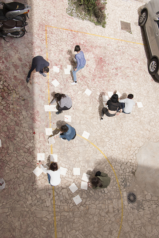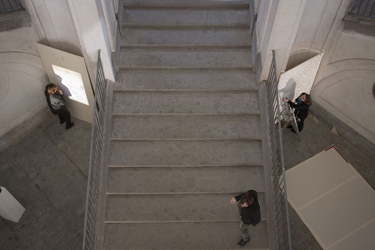 The performing workshop and the exhibition will follow each other temporally on the monumental staircase, and in the adjacent spaces, of the Palazzo Cassano Ayerbo D’Aragona – Casa Morra. The public will be able to appreciate the different phases of work and, in particular: