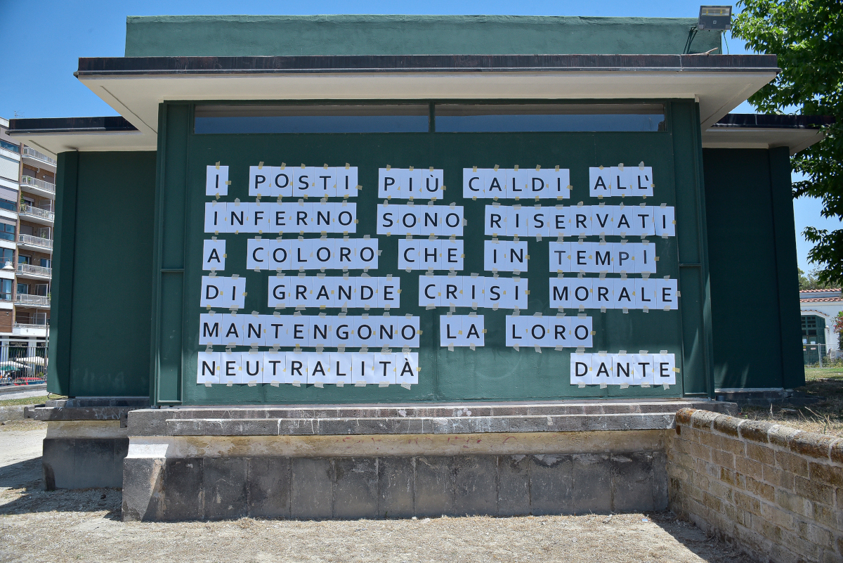 The Villa Comunale becomes a monumental stage to express urgencies that have become even more pressing during the last year: particularly the need to go back to nature, to communal life, to solidarity, to collective and individual responsibility. Such needs compel us to live with awareness and courage, steadfast in our belief that “La Rivoluzione siamo Noi” (we are the revolution).