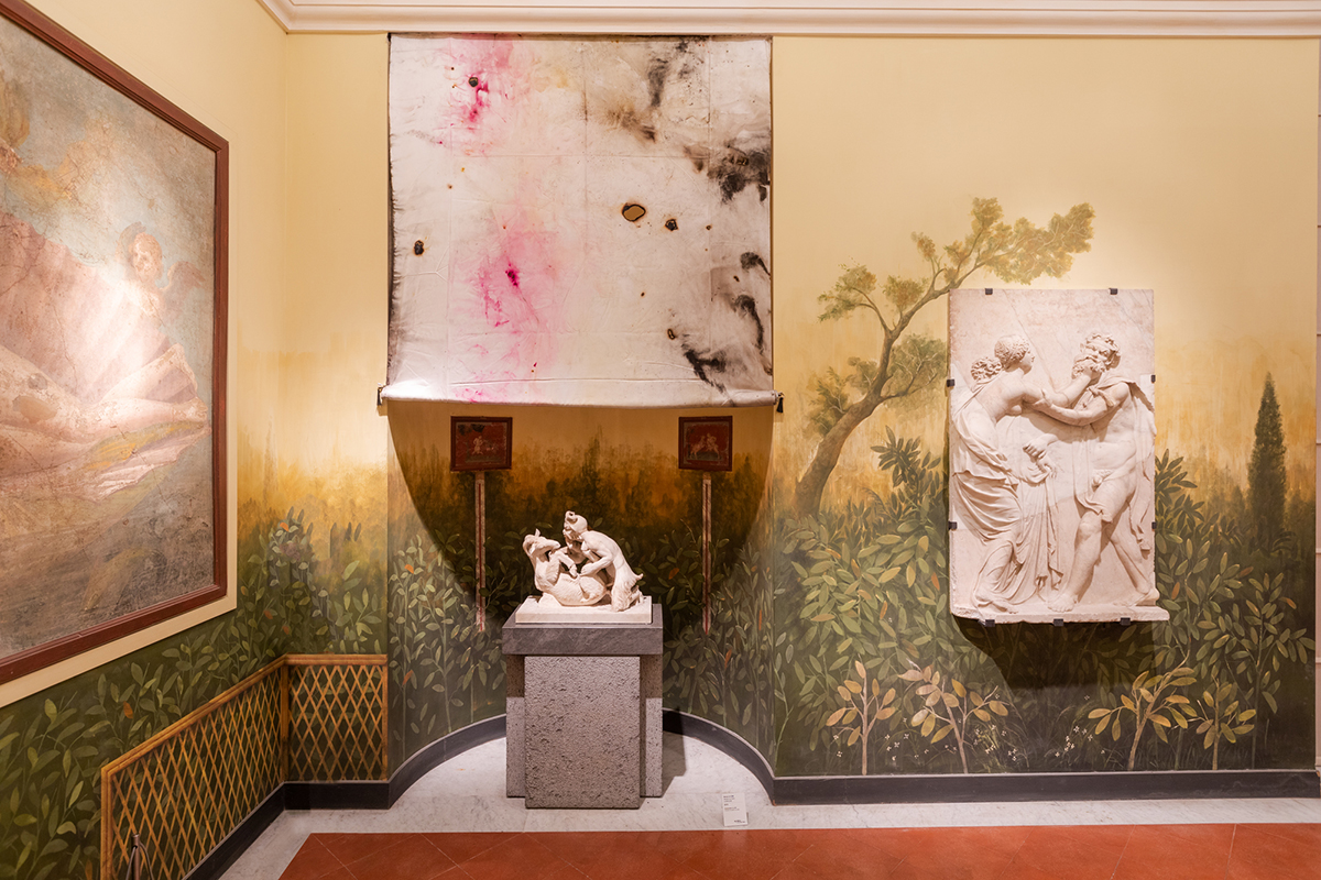 In addition to the great masterpieces of ancient statuary, copies of the Farnese Hercules and the Venere Callipigia, reinterpreted by Cai through the colours of the explosion, will also be installed, and the three busts of Pseudo-Seneca in various colours as symbol of the different identities of Seneca the Young – tragic poet, philosopher and involuntary mentor of dictators – in an interplay with the various architectural forms that will attract the gaze of the visitors.