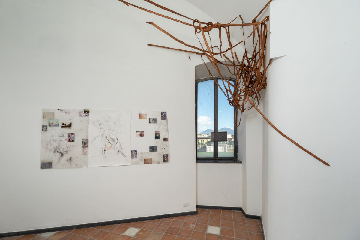- Installation view. Andrea Bolognino, Engramma (2021), Samara Behringer, Untitled (2021), Open Systems, Museo Hermann Nitsch, Naples, 2021 © Danilo Donzelli Photography