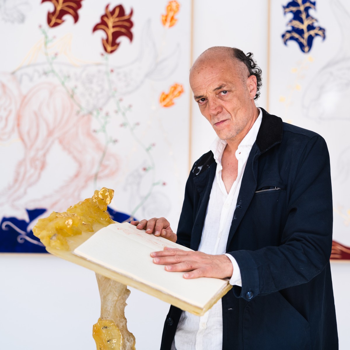 Maurizio Elettrico was born in Naples, where he lives and works, in 1965. After studying the natural sciences, he directed his artistic research mainly towards the interdisciplinary relationships between philosophy, history, and iconography. His art is remarkable for the variety of materials he uses and the lexicon he employs, ranging from drawings on the finest paper, to sculpture and multi-material installations blending organic and artificial materials, to video, performance, and a copious written output. Elettrico invests the everyday world with a neo-mythological vitality in which the radical secularization of the sacred and science fiction interweaves to create a short circuit where the sense and non-sense of his poetics create a continuous balance between reality and dream. The rediscovery of dissonant forms and materials opens up a magical world of medieval ascendency to produce a visual pantheon that blends artistic creation and scientific knowledge.