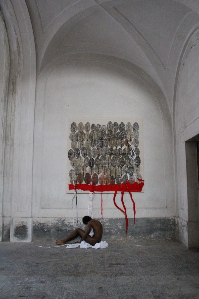 The city itself, for a work that is born site-specific, becomes matter that, at contact, declines its resonance. Of Naples is the female dimension that the artist can not avoid to face. Her pity of exhausted shore, lapped by a sea in pain, finds in the feminine attribute the power to inflate an ancestral and regenerating energy that from the port rises and unravels through the alleys, blood vessels, nervous system of a human community that he has learned to overcome the lacerations through practice, evolving until it exists, in the condition in which the most excruciating pain coincides with the state of normality. Because of this devotion to the natural absolute, Naples refuses the differences, its children are all the same. The distinction passes through a system of seams, balances, stitches, which have crossed the flesh not without pain.