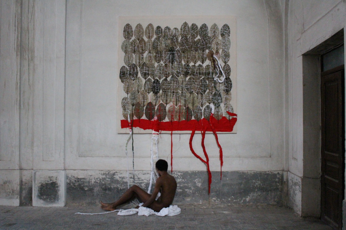 On the monumental octagonal scale of the Palazzo Cassano Ayerbo D’Aragona, on 29 June 2018 will take shape, after a period of residence held in this same place, the performance and textile installation of the artist Thomas De Falco. A vision played on the dialogue between human and natural forms, in their original reciprocity, will decline through a mixed landscape of sculptural bodies and tapestries, in which the performers become sculptural extension, protuberance of the support through wrapping used as connectors of the two worlds, and their turn, a counter-representation of nature itself, in a dreamlike and all-encompassing scenario.