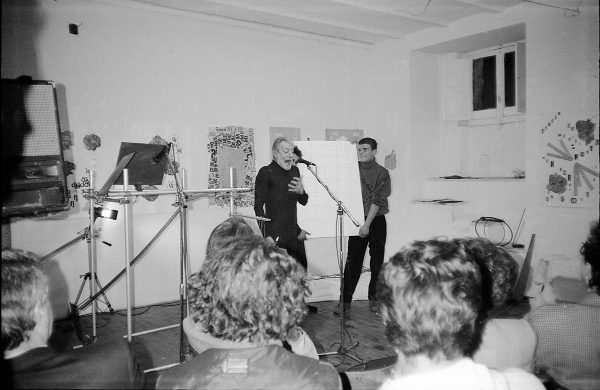 - Installation view (detail), Poesia visuale-concreta, Studio Morra, Napoli 1989 Arrigo Lora Totino Courtesy Fondazione Morra