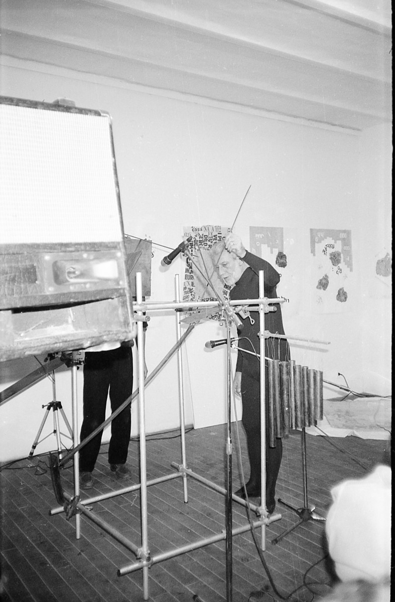 - Installation view, Poesia visuale-concreta, Studio Morra, Napoli 1989 Arrigo Lora Totino Courtesy Fondazione Morra