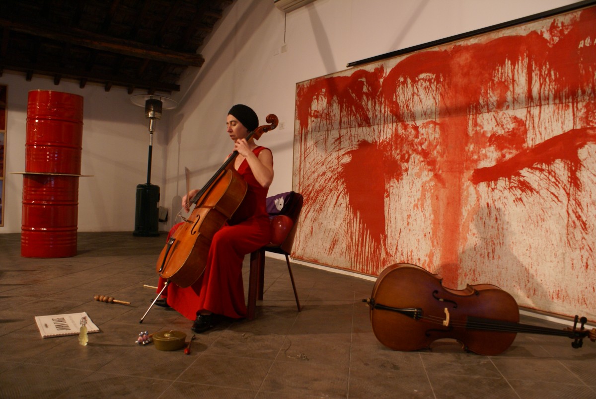 La performance Fluxus AVc, il Piccolo Teatro Privato e Sonoro di Rebecca von Stahl (in memoriam Charlotte Moorman) inizialmente mette in scena l’isteria di una violoncellista, la metamorfosi di una musicista, dall’agitata solista classica alla sfrenata performer di avanguardia.