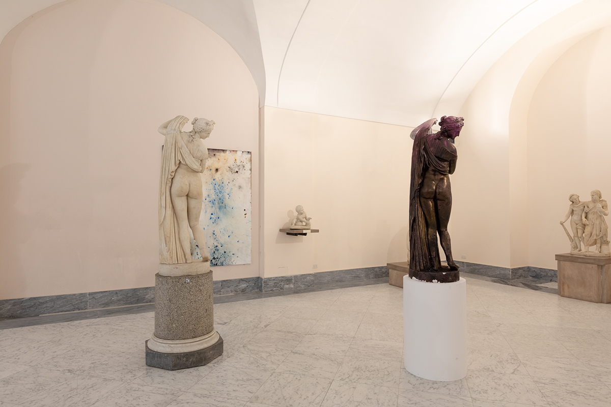 Saranno installate, ancora, accanto ai grandi capolavori della statuaria antica, le copie dell’Ercole Farnese e della Venere Callipigia, reinterpretate e rilette da Cai grazie ai colori dell’esplosione, e i tre busti dello Pseudo-Seneca di differenti colori come simbolo delle diverse identità di Seneca il Giovane – poeta tragico, filosofo stoico e mentore involontario di tiranni – che giocando sulla diversa modulazione delle forme attireranno lo sguardo del visitatore.