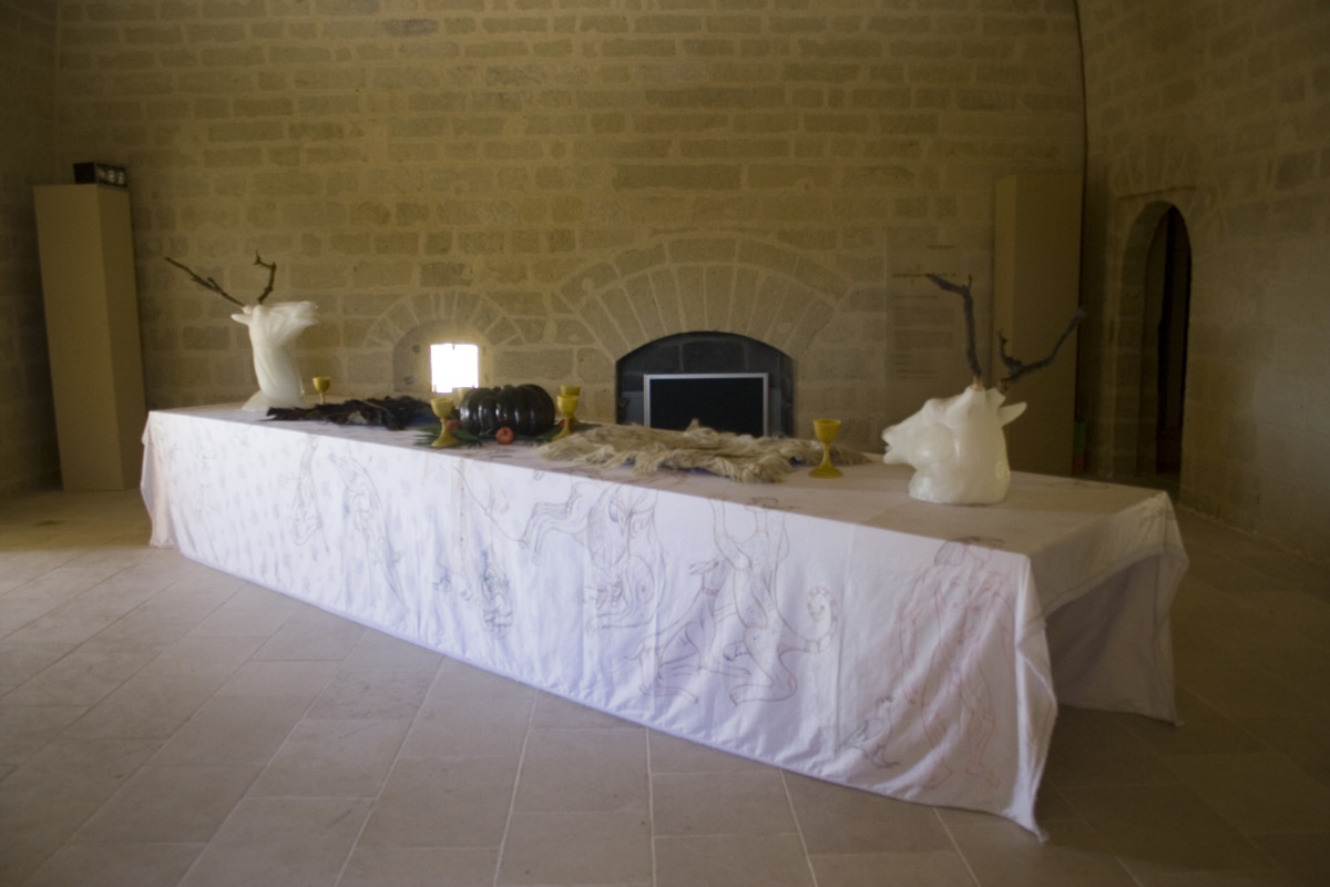 - Installation View (detail), La Cena Segreta (Intramoenia Extra art), Castello di Acaya, Lecce 2007 Maurizio Elettrico Courtesy Fondazione Morra