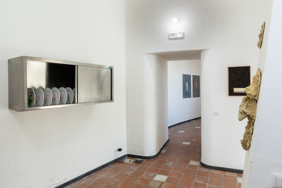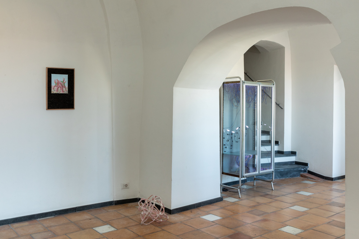 - Installation view. Andrea Bolognino, Engramma (2021), Samara Behringer, Untitled (2021), Open Systems, Museo Hermann Nitsch, Napoli, 2021 © Danilo Donzelli Photography