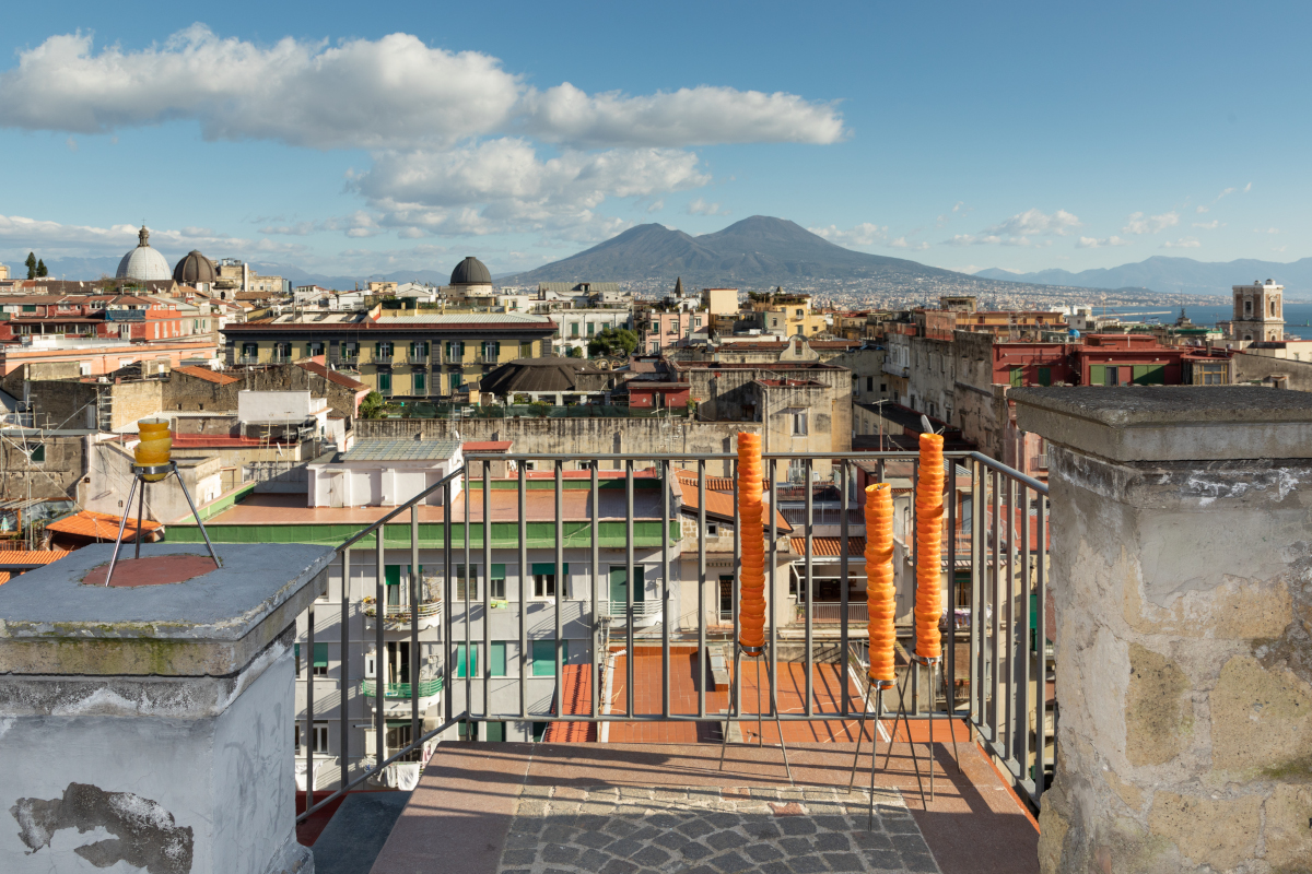 - Installation view. Isabell Schulte, part VIII (2021), Antonio Della Corte, Where living forms can exist (2021), Angela Melito, Hela havet stormar (il gioco delle sedie) (2021), Open Systems, Museo Hermann Nitsch, Napoli, 2021 © Danilo Donzelli Photography