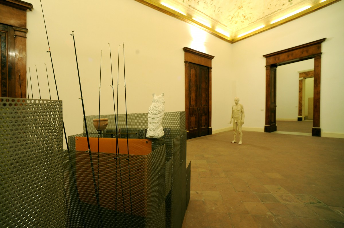Infine nella sala maggiore saranno presentate due opere concepite come un lavoro unitario; una scultura a figura intera modellata in cera, sorta di “autoritratto” di Giliberti, che fronteggia un’istallazione di Fortuna realizzata assemblando delle lastre di metallo. Una specchiatura, dunque, in cui la contrapposizione frontale degli oggetti ci porta a percepire la loro