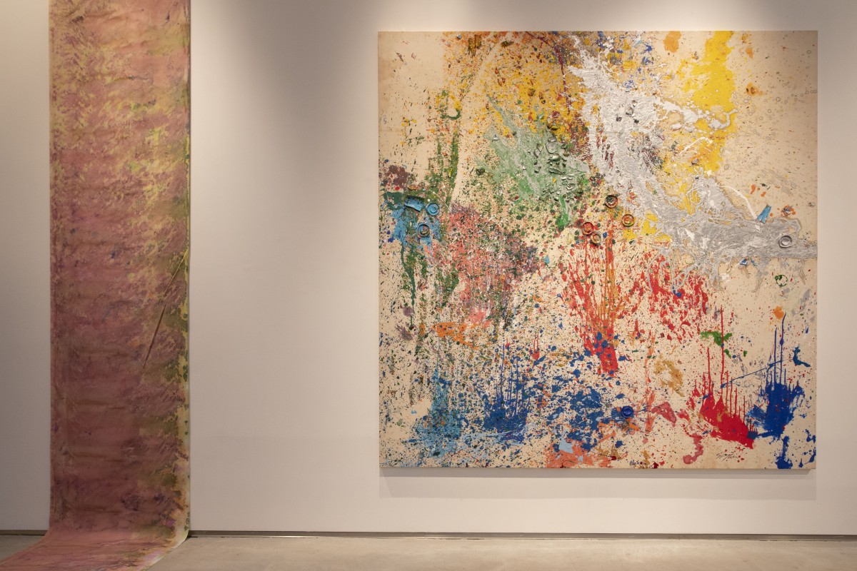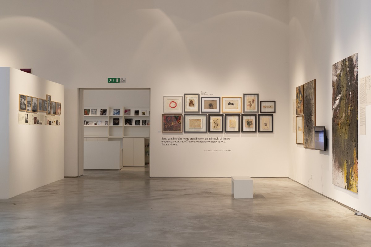 - Installation View, Shozo Shimamoto Grandi Opere, CIAC, Foligno, 2021 © photo Elisa Partenzi Courtesy Fondazione Morra