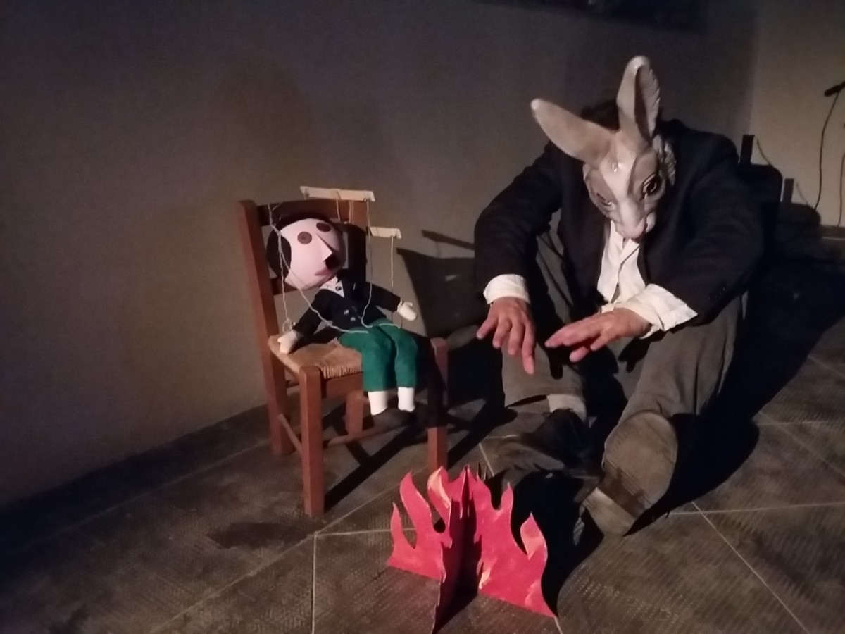 Due attori in scena, un uomo e una donna, affronteranno il panico che scaturisce dalla visione del vuoto. Il nulla impera nella sostanza materiale e immateriale che costruisce la società e i due vogliono prendere il loro posto nell’Olimpo del potere. Come neghittosi dei, si spingono oltre la loro nudità, inebriati dalle parole che il loro dio supremo recita nel tuono d’un cielo avverso, con l’ausilio del megafono o dell’altoparlante, perché il trucco escogitato dalla sapiente mano dell’uomo possa far giungere il verbo a tutte le persone, non dentro le persone ma dentro le loro orecchie. Ne uscirà, nel tempo, un individuo nuovo, pulito, igienicamente ineccepibile, “very nice” dalla sua immagine nello specchio, un individuo che è nuovamente dio, a sua immagine e somiglianza. Andrea Cramarossa Teatro delle Bambole a Napoli con l’epilogo del progetto quinquennale “La lingua degli insetti” (2012-2017).